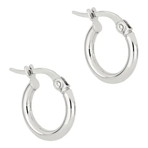 Arracada tubular de oro blanco 14k, estilo moderno y sofisticado con acabado liso.