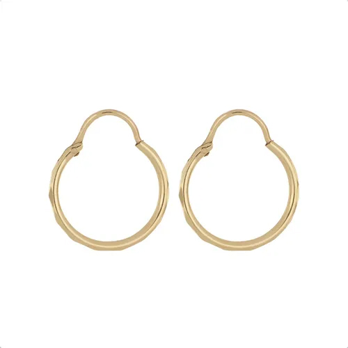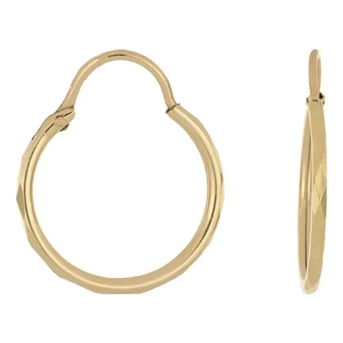 Estas arracadas facetadas de oro amarillo de 2.2cm son el equilibrio perfecto entre tamaño y brillo. Su superficie cortada con precisión ofrece un centelleo constante, añadiendo un toque de glamour a cualquier atuendo.