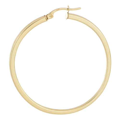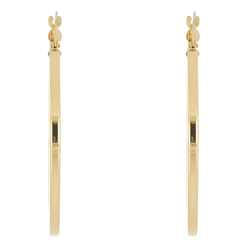 Aros grandes con perfil cuadrado y diseño tubular en oro de 10k, modernos y audaces.