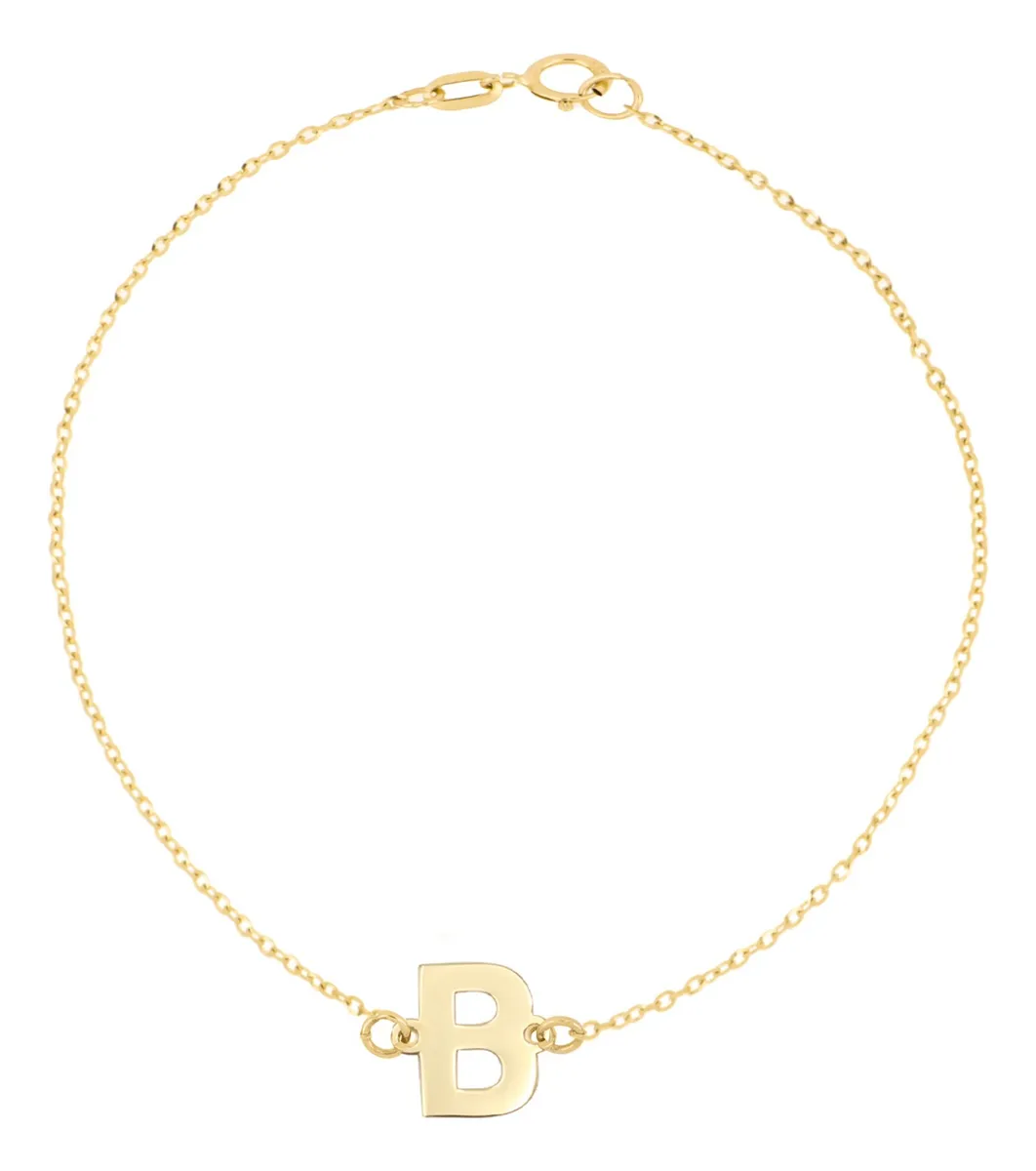 Pulsera Zekie con dije de inicial B en oro de 14k