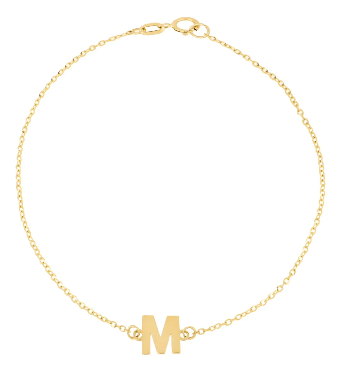 Pulsera Zekie con dije de inicial M en oro de 14k
